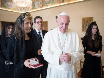 Madame Albertini et sa famille en compagnie du Pape François