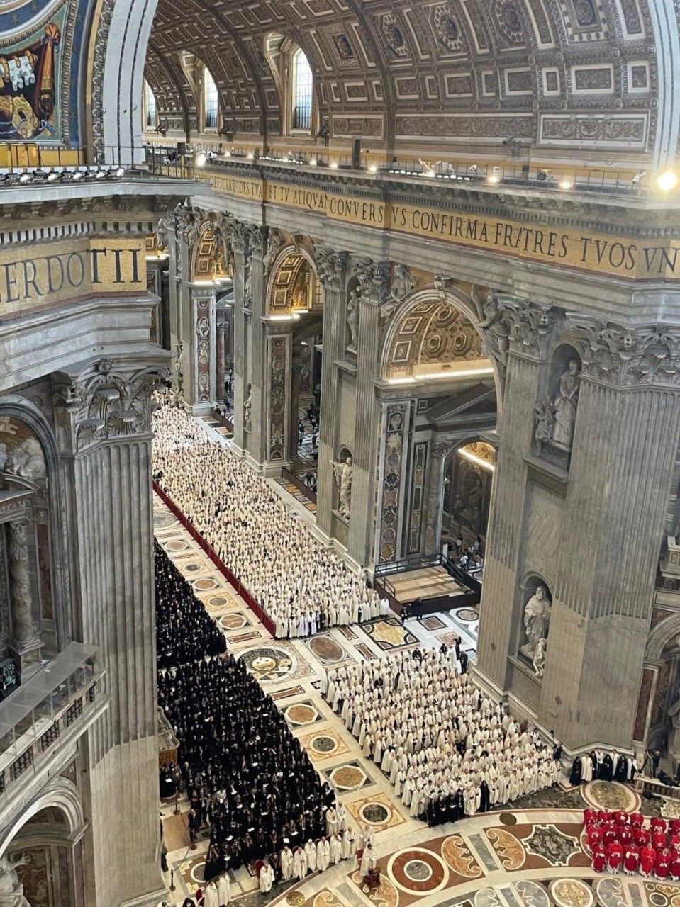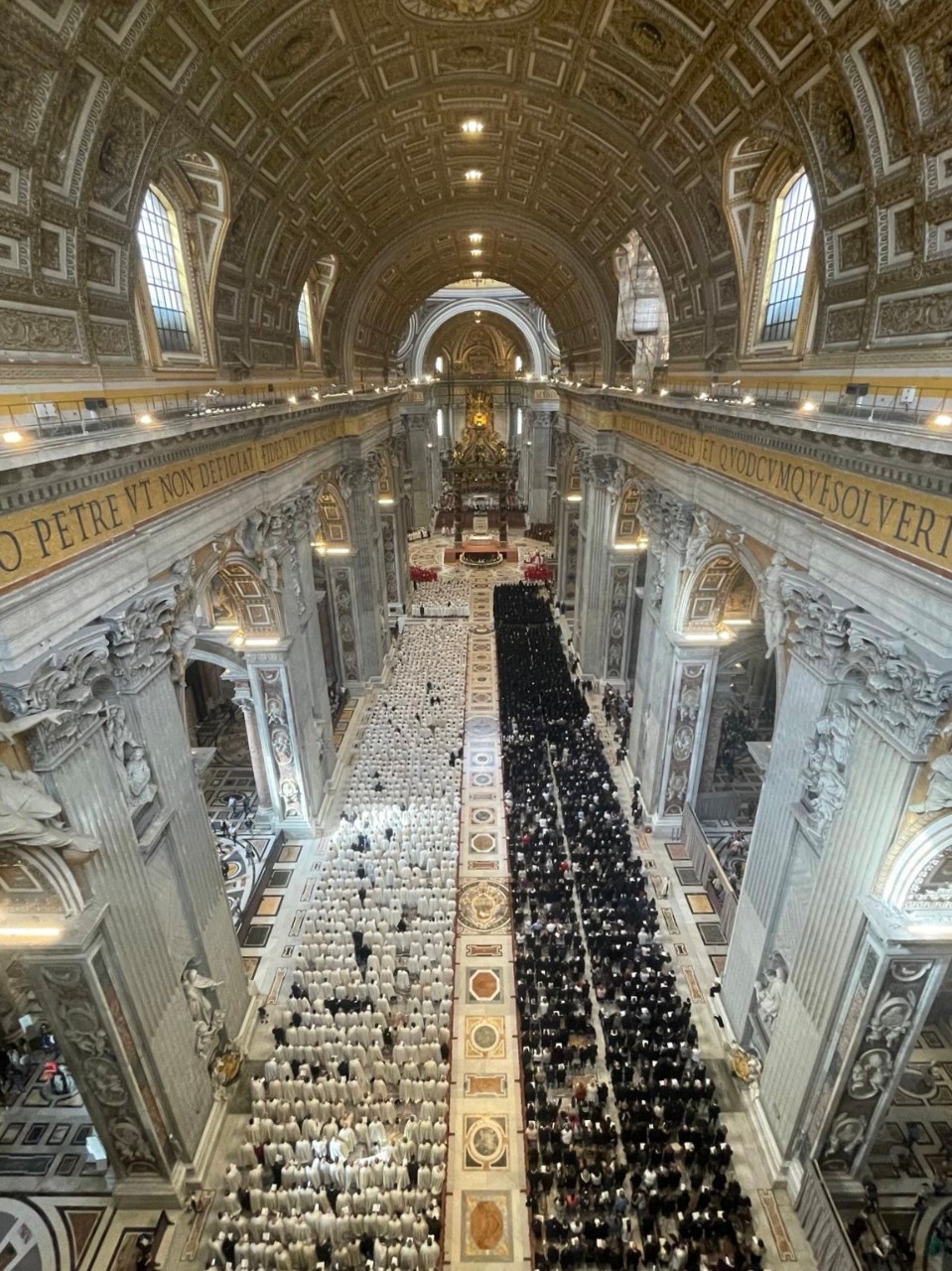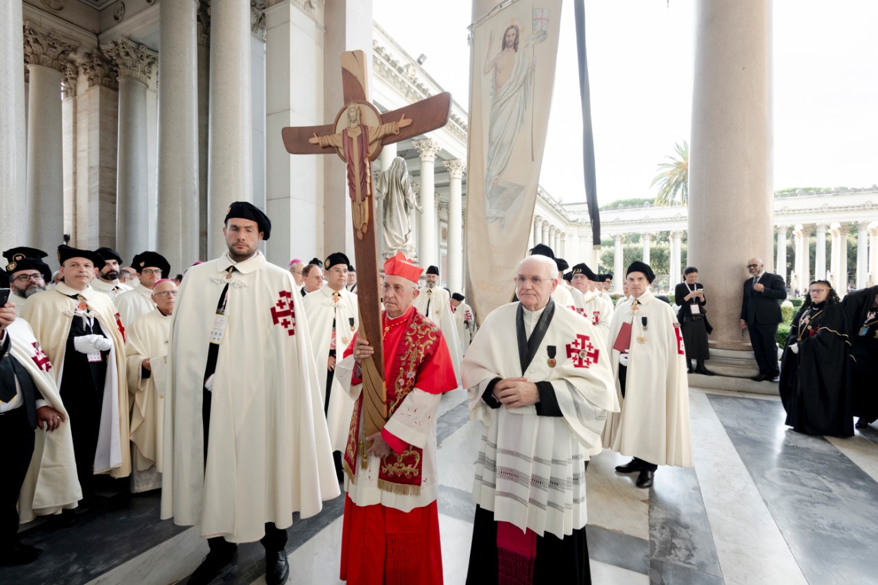 El 23 de octubre, más de 3600 Caballeros y Damas, tras participar en la audiencia pontificia concedida por León XIV, avanzaron en procesión desde la sala Pablo VI hasta la Puerta Santa de la basílica de San Pedro, antes de asistir a la celebración eucarística presidida por el Gran Maestre. «Ubi Petrus, ibi Ecclesia» (donde está Pedro, allí está la Iglesia): con esta sentencia de san Ambrosio, el cardenal Filoni volvió a subrayar el compromiso activo de los miembros de la Orden con la solicitud del papa en favor de la Iglesia en Tierra Santa.