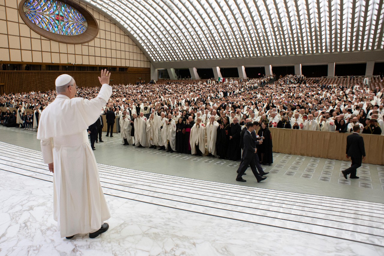 El santo padre los recibió el pasado 23 de octubre en la sala Pablo VI, durante el tercer día de su peregrinación, justo antes de la celebración de la misa en la basílica de San Pedro, que los reunió alrededor de su Gran Maestre, el cardenal Fernando Filoni. El santo padre les expresó un agradecimiento especial por la valiosa ayuda que brindan a las comunidades de Tierra Santa, «sin hacer ruido y sin publicidad», «apoyando al Patriarcado Latino de Jerusalén en sus diversas actividades: el seminario, las escuelas, las obras caritativas y de asistencia, los proyectos humanitarios y formativos, la universidad, la ayuda a las Iglesias, con intervenciones especiales en momentos de mayor crisis, como ocurrió durante la pandemia de COVID-19 y en los trágicos días de la guerra».