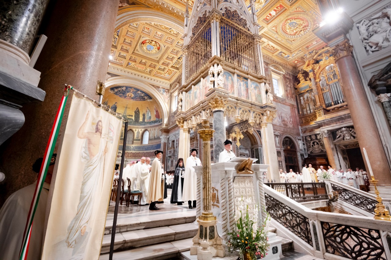 Según la tradición, la reliquia del pesebre se conserva en esta basílica, motivo por el cual se considera la «Belén de Occidente». Las Damas y los Caballeros recordaron que, desde el vientre de la Madre (Sal 22), son hijos y herederos, gracias al Espíritu que los inspira a llamar a Dios «¡Abba, Padre!» (Ga 4, 4-7), siguiendo a Cristo y permaneciendo en Él.