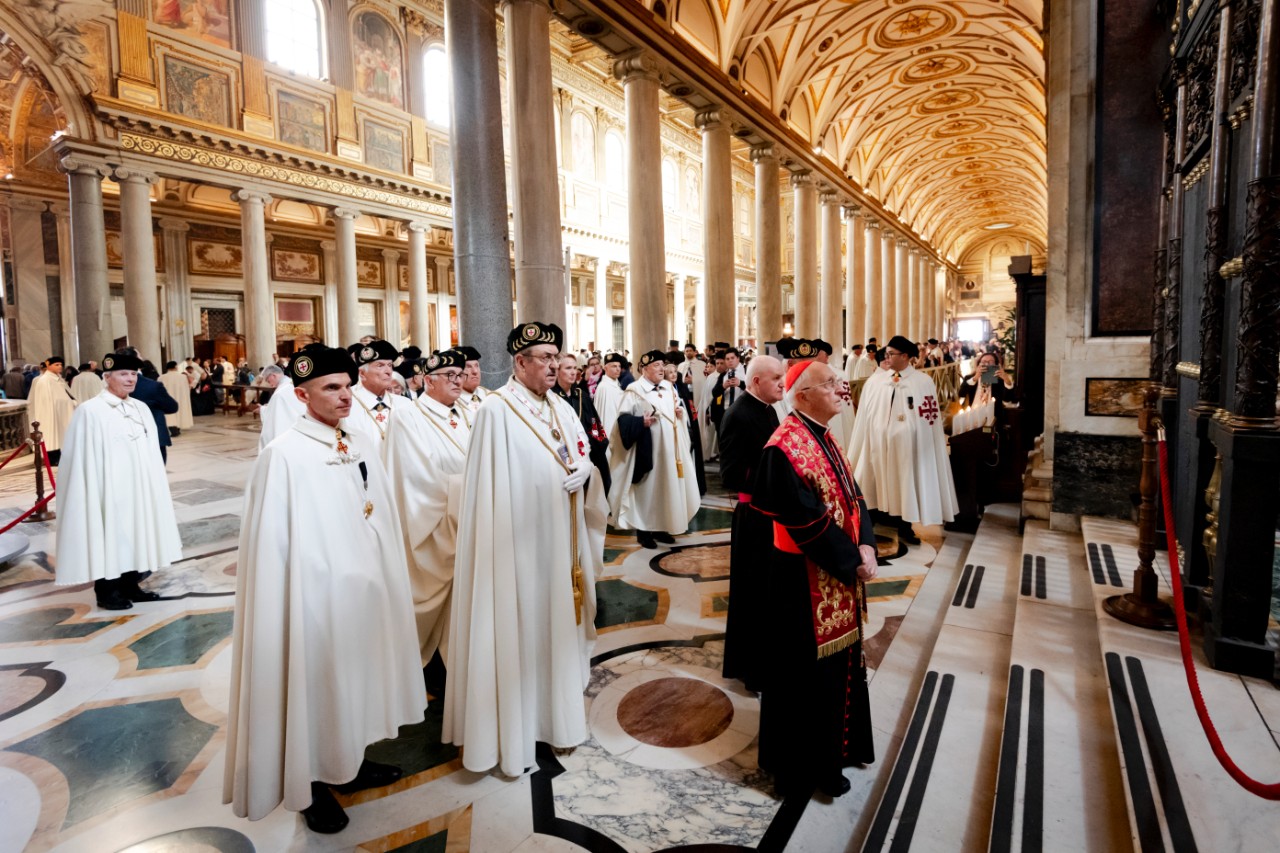 Fortalecidos por esta experiencia sobrenatural, se unieron en oración ante los mosaicos de la Anunciación, la Presentación en el Templo y la Adoración de los Magos, meditando el «fiat» de la Madre de Dios. En procesión, tras el Gran Maestre y el Gobernador General, los peregrinos recitaron el rosario en silencio, deteniéndose unos instantes en recogimiento ante el icono de la Salus Populi Romani, atribuido a san Lucas y muy querido por el corazón del papa Francisco, cuya sepultura se encuentra en esta basílica.