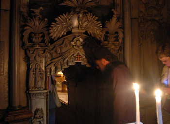 Aux femmes venues embaumer le corps de Jésus, l'ange annonça : «Pourquoi chercher parmi les morts celui qui est vivant ? » Il n'empêche : le croyant tient à vénérer le lieu où le corps de Jésus a été déposé. C'est le concret de sa foi qui est engagé. A plus forte raison pour les membres de l'Ordre.